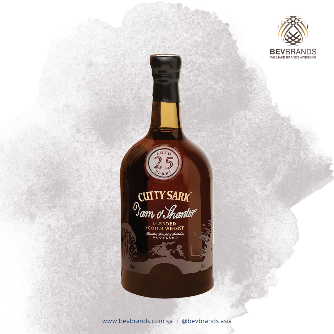 Cutty Sark 25 Year Old Tam o’Shanter Edition Blended Scotch Whisky Singapore is a 700mL whiskey with 46,5% Alcohol By Volume (ABV) from Scotland sold by Bevbrands Singapore.