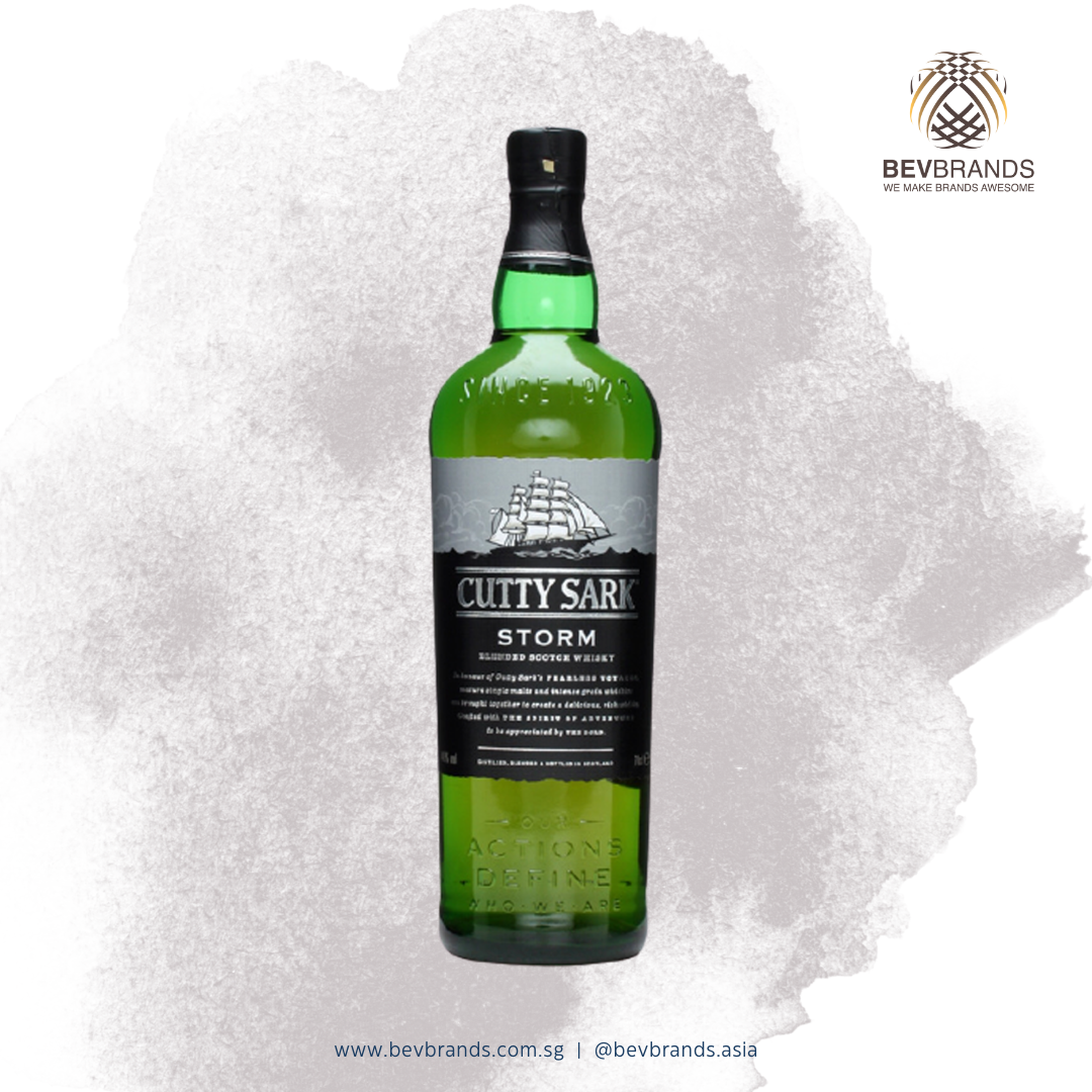 Cutty Sark Storm Blended Scotch Whisky Singapore is a 700mL whiskey with 40% Alcohol By Volume (ABV) from Scotland sold by Bevbrands Singapore.