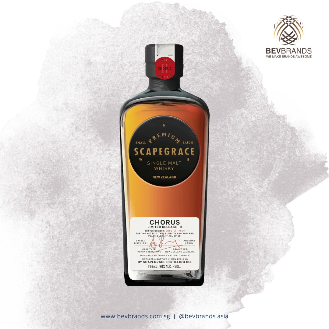 Scapegrace Chorus Single Malt Whisky Limited Release II 700 mL 46 Percent ABV from New Zealand sold by Bevbrands Singapore.